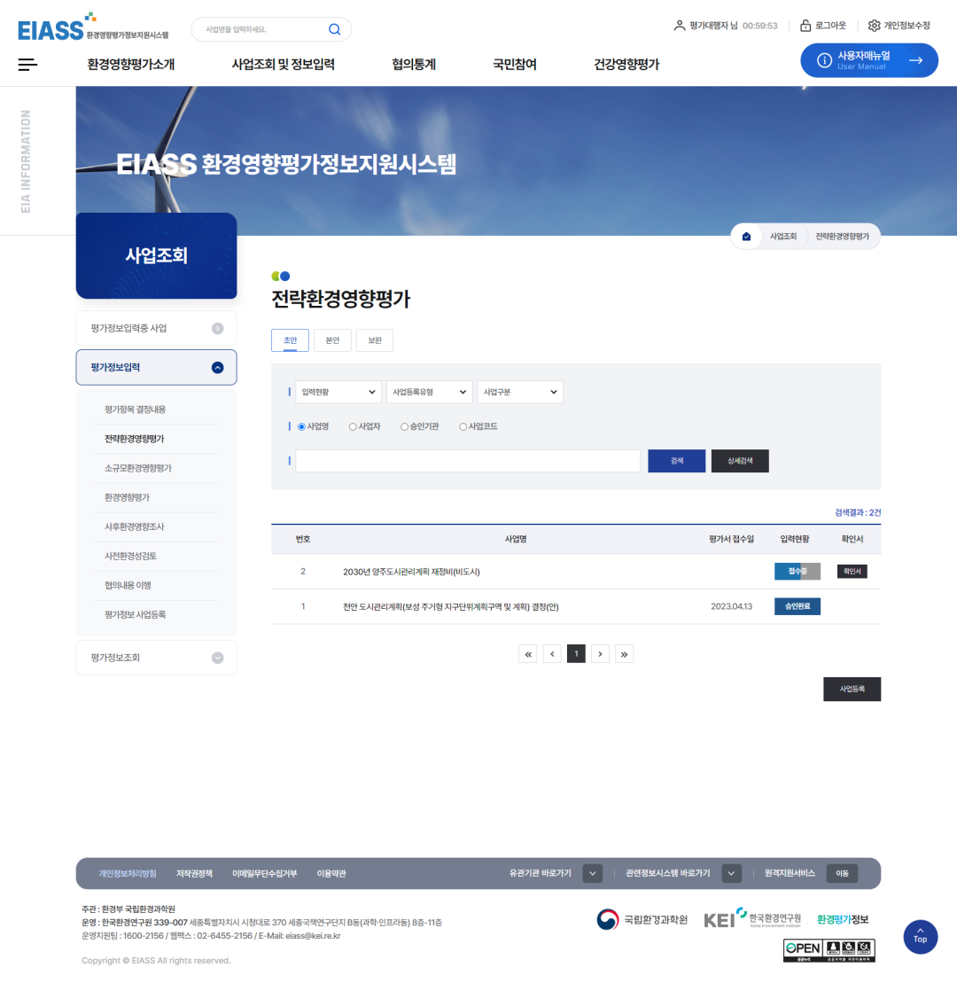 1전략환경영향평가 탭을 클릭합니다.
