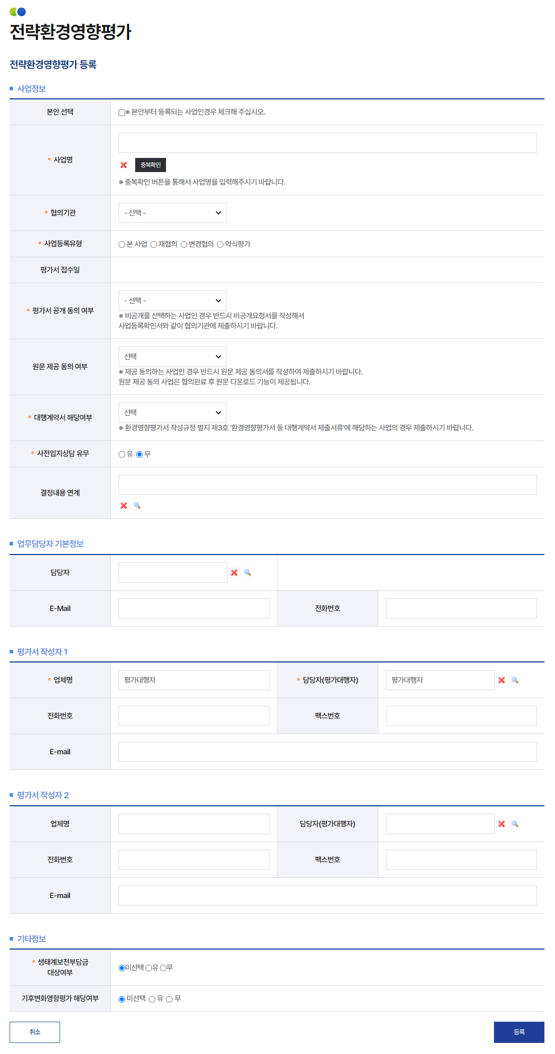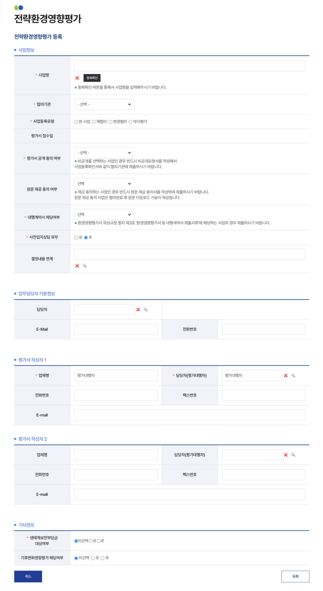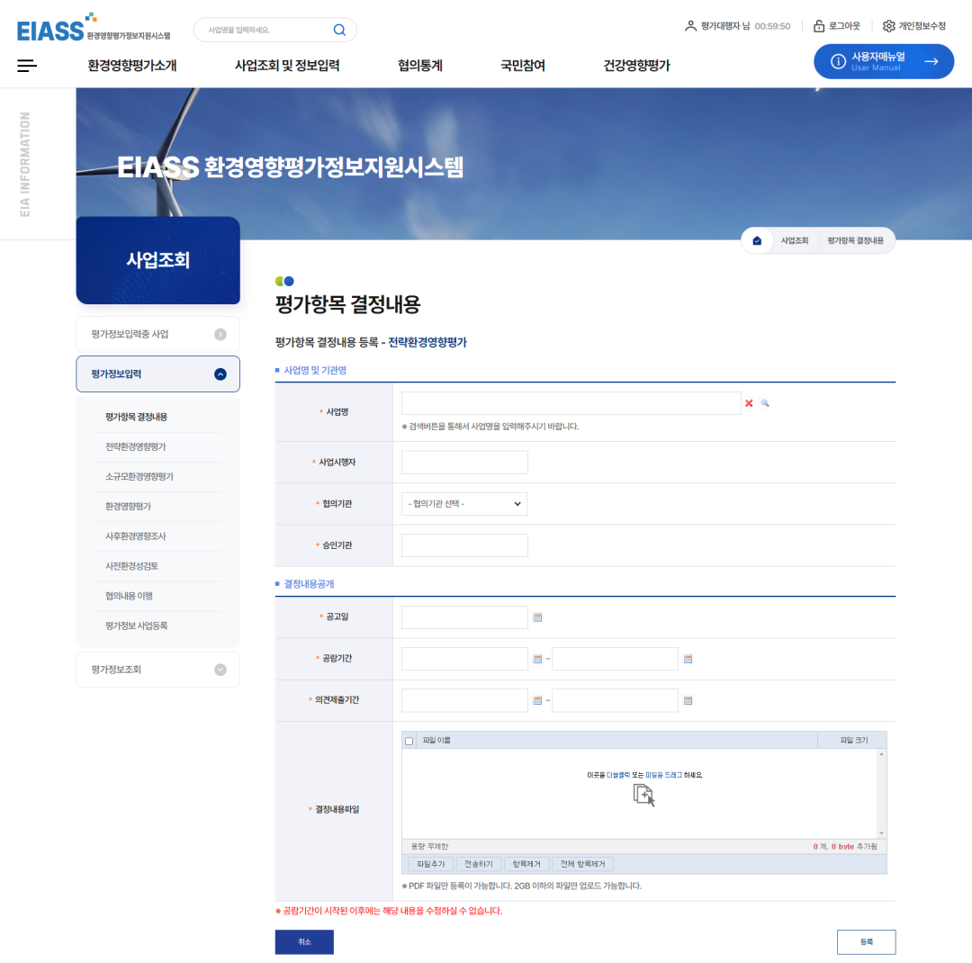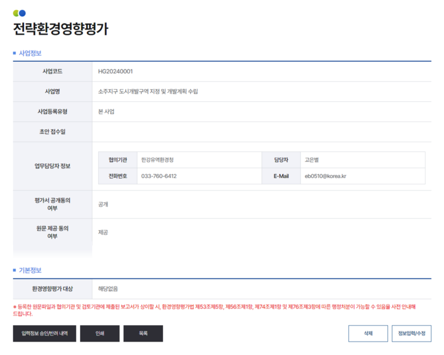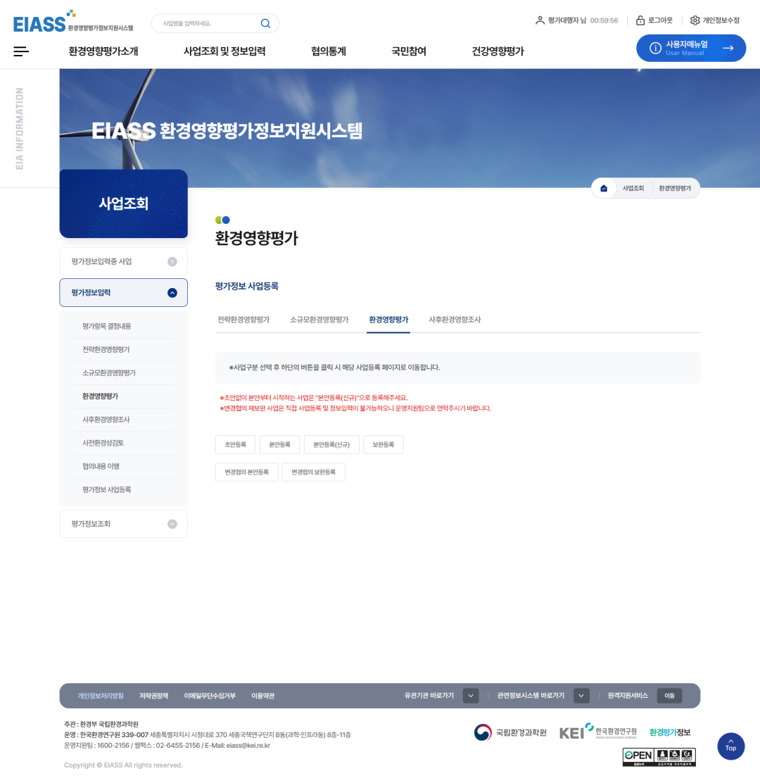 4전략환경영향평가와 환경영향평가 중 등록하고자 하는 구분을 선택합니다.