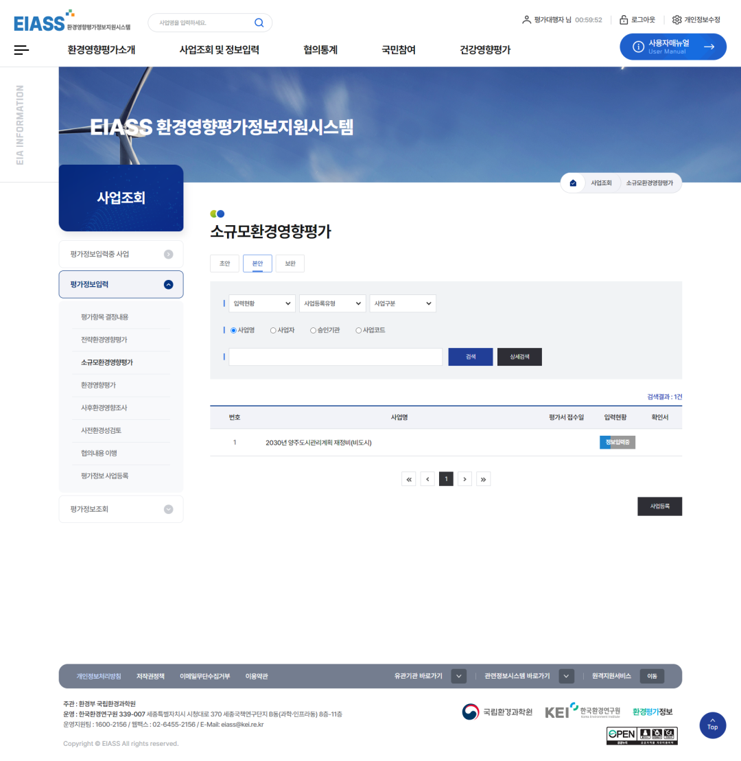 1소규모환경영향평가 탭을 클릭합니다.