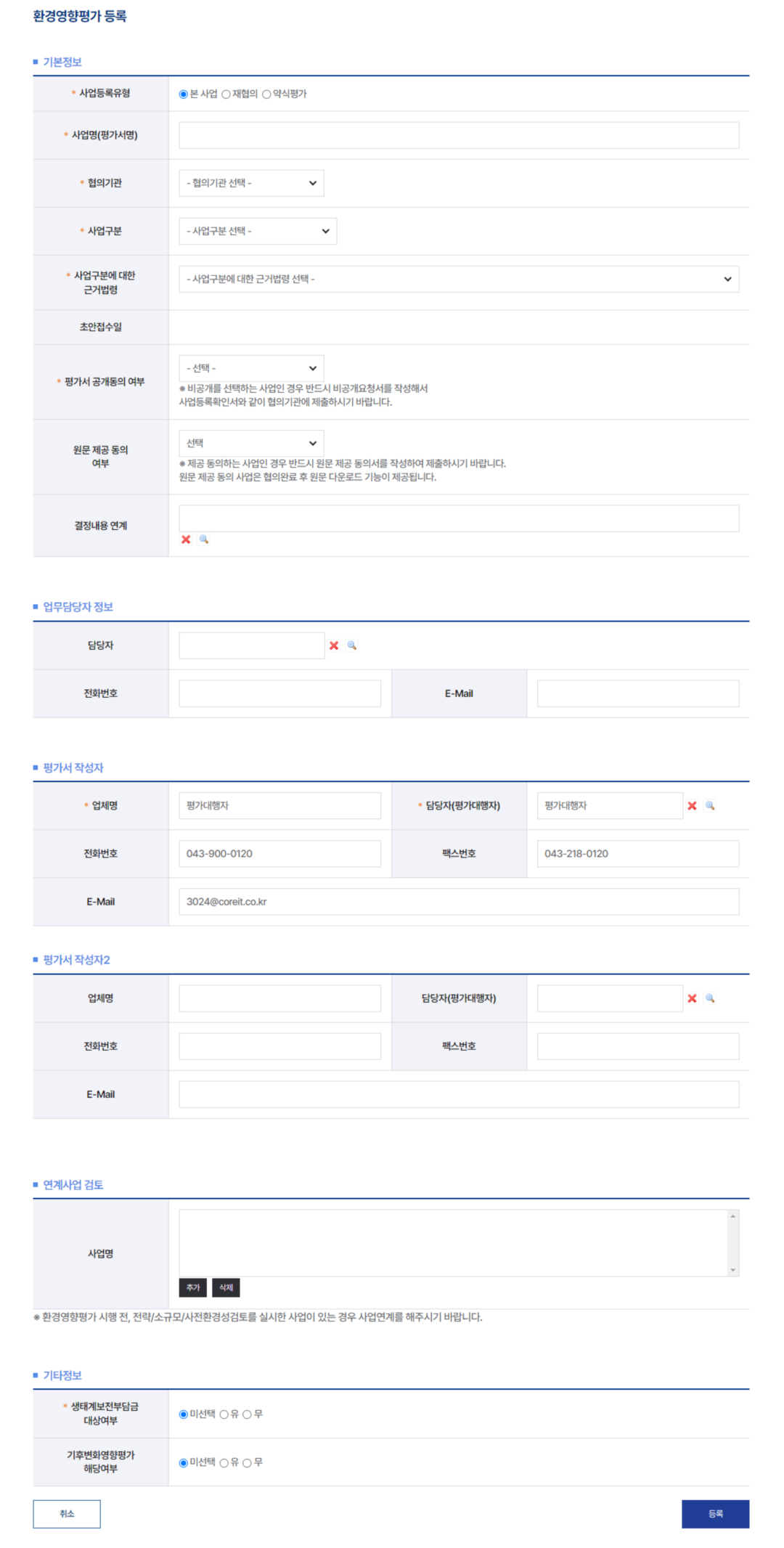 3평가정보 사업등록 선택