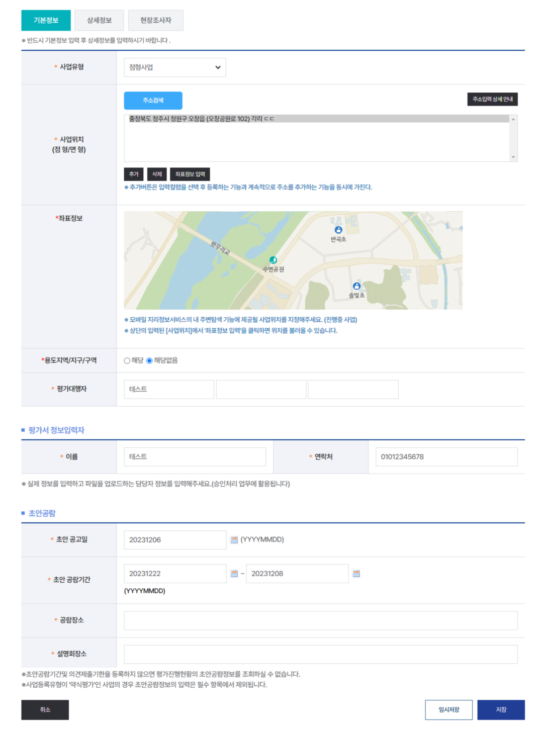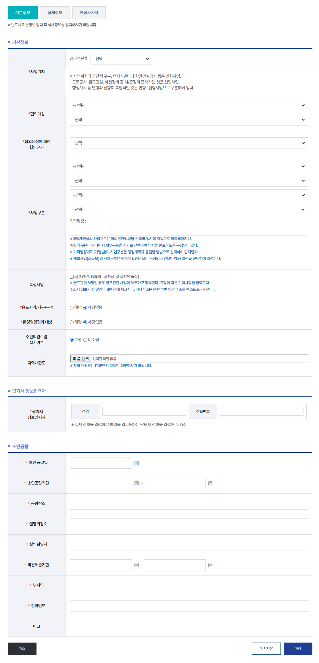 3초안공람이 생략되거나 미정인 경우 공란으로 두고 임시저장 버튼을 클릭합니다. (수정이 필요한 경우에는 운영지원팀으로 연락주시기 바랍니다.)