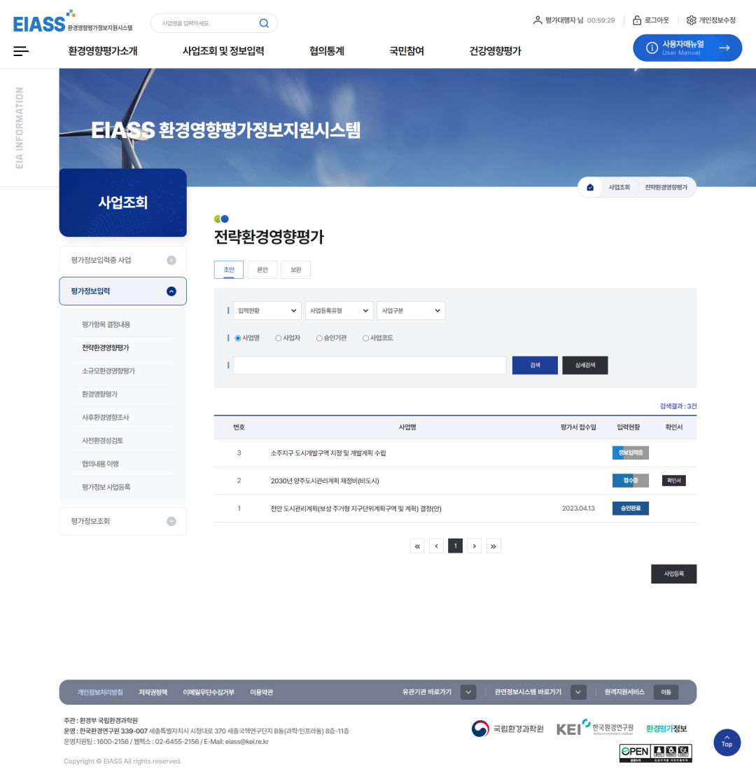 3 환경영향평가를 선택합니다.