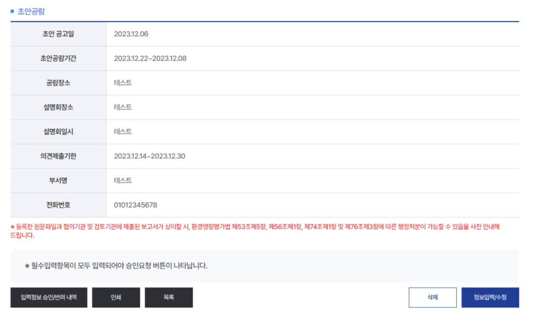 승인요청 전 까지만 수정 및 삭제가 가능하며, 승인요청 후에는 수정/삭제가 불가능합니다.