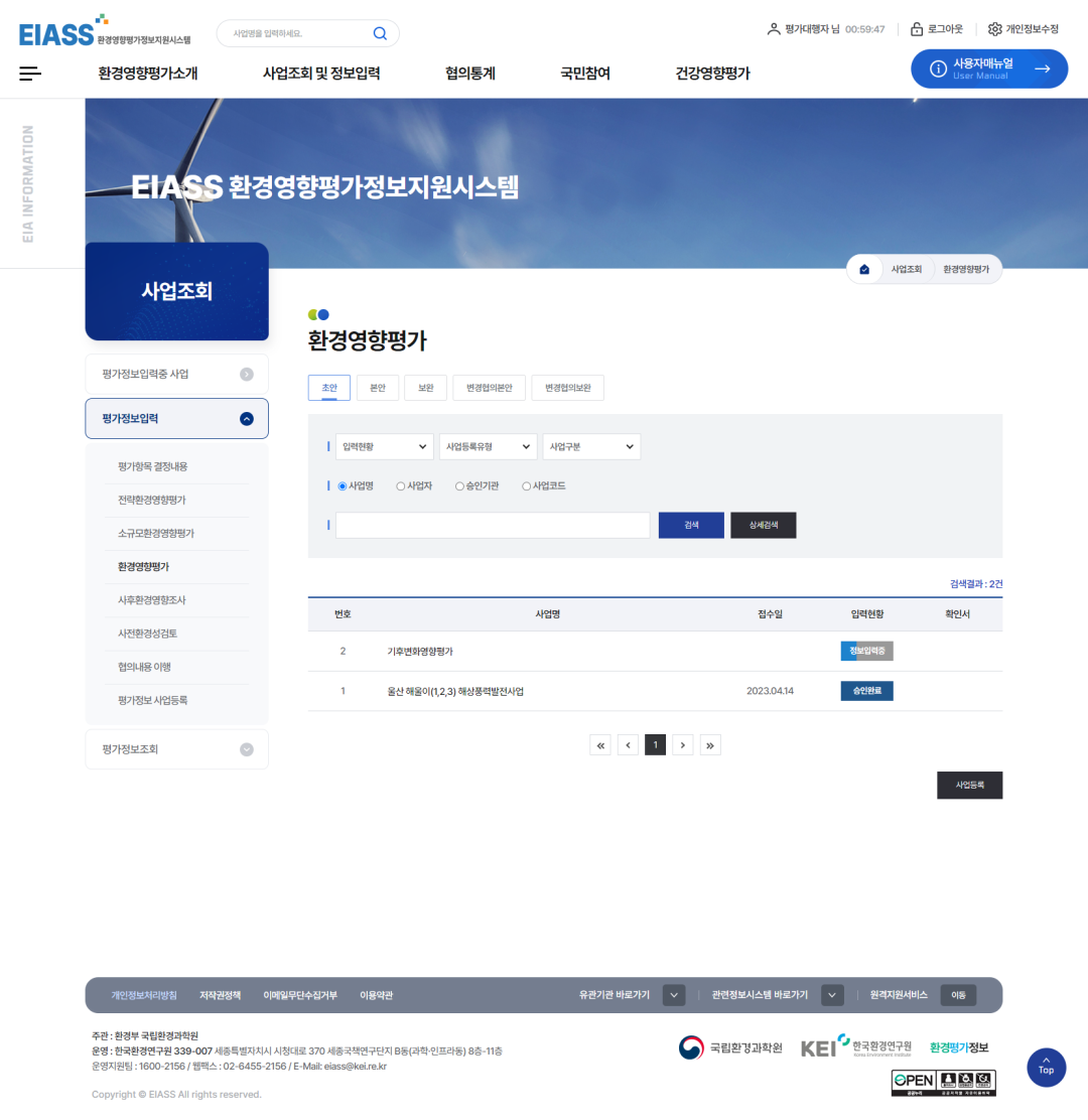2사업명을 입력 후 검색합니다.