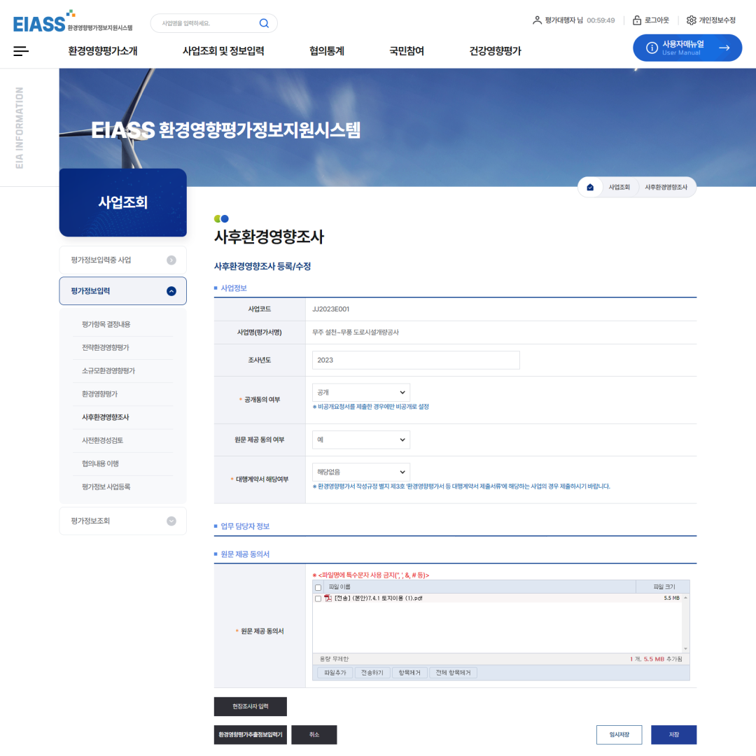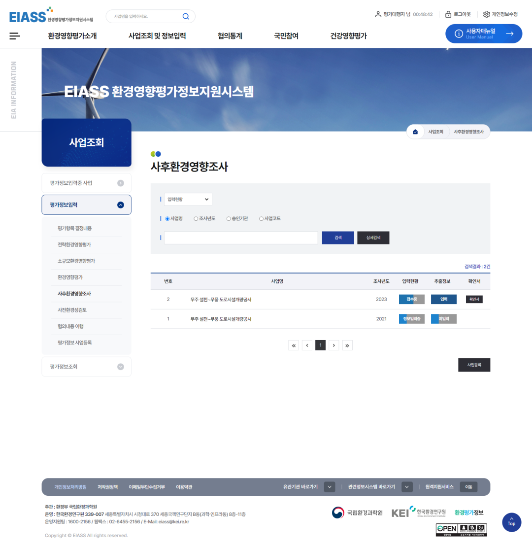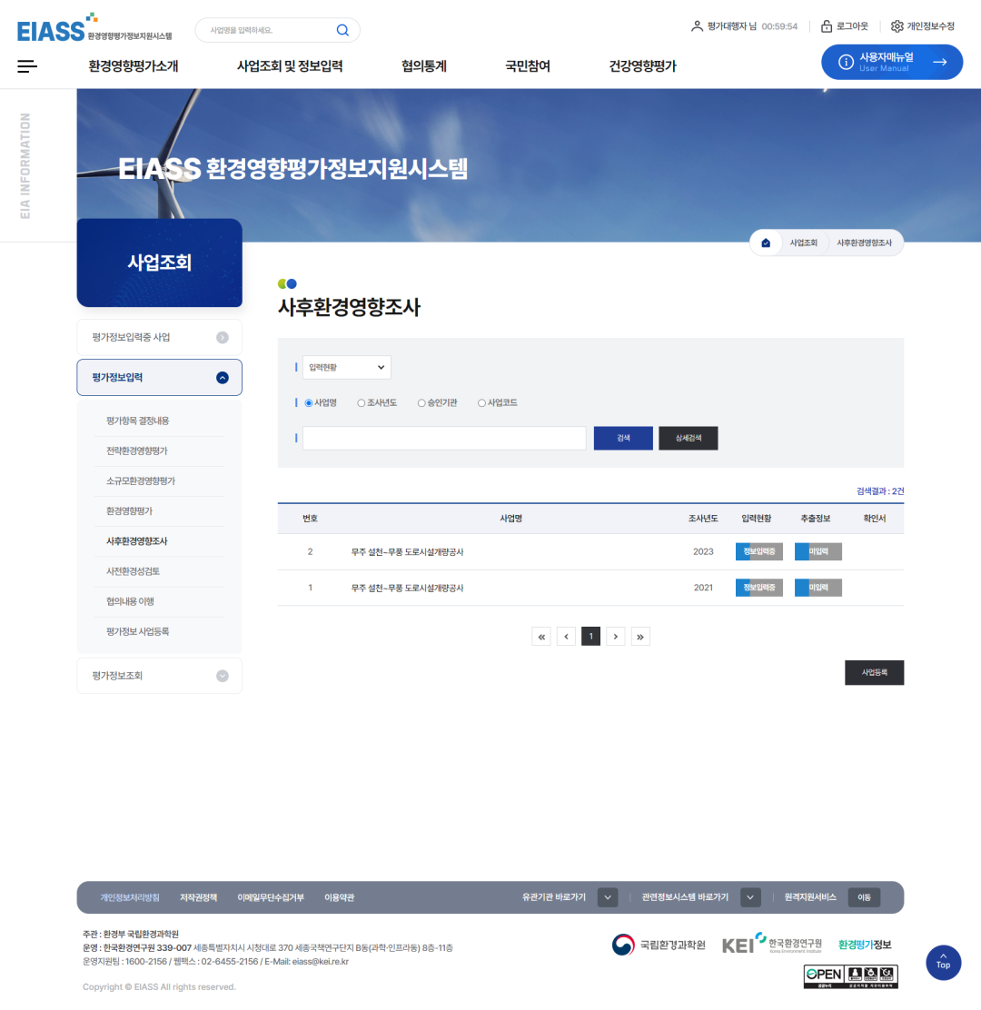 3사후환경영향조사를 선택합니다.